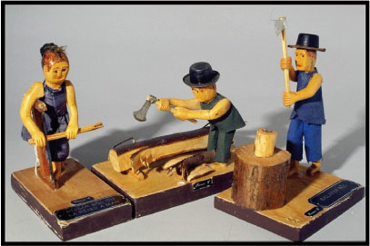 I modellini della Collezione riproducono le diverse fasi di preparazione del legname, dal taglio delle diverse parti, alla lavorazione e squadratura, fino alle varie tecniche di trasporto.